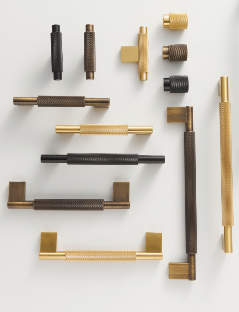 Satin Brass Textured Solid Brass Cabinet Handles & Knobs – Modern Brass Cabinet Hardware